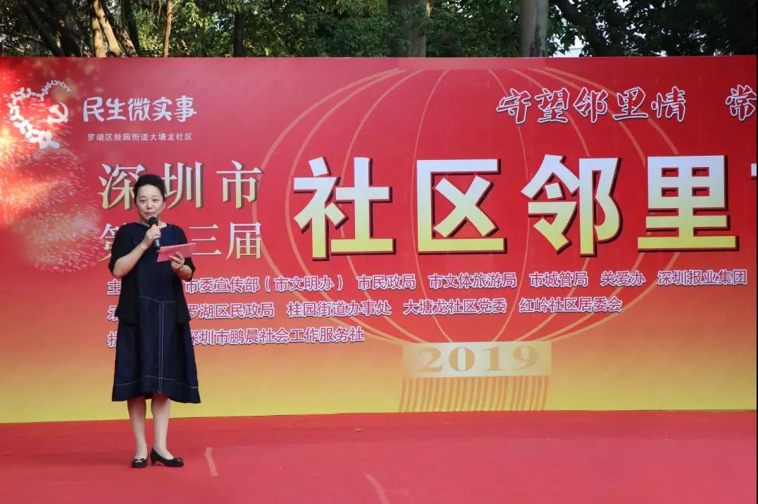 “深圳市第十三届社区邻里节”由市委宣传部(市文明办)、市民政局、市文体旅游局、市城管局、关爱办、深圳报业集团、深圳广电集团主办;罗湖区民政局、桂园街道办事处、大塘龙社区党委、红岭社区居委会承办,社区居民欢聚一堂,载歌载舞,共同描绘着社区居民美好幸福的家园梦,这也是深圳怡康妇产医院第三年为大塘龙邻里节活动提供义诊服务。
