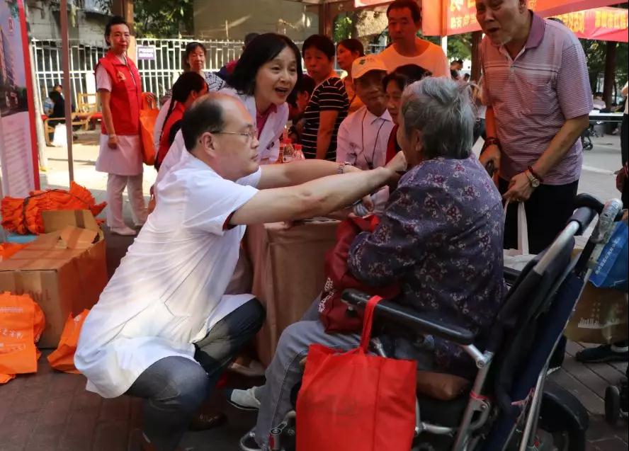 “可以给我也看一下吗,都好久没有测过了……”一位坐轮椅的老奶奶出现在大家视野中,正在排队测血压的人群纷纷让出位置,让88岁的邻居优先,王思广业务院长也蹲下身来为长者服务:“血压在正常范围内,要保存现状……”得知自己血压正常,老奶奶脸上露出了笑容。