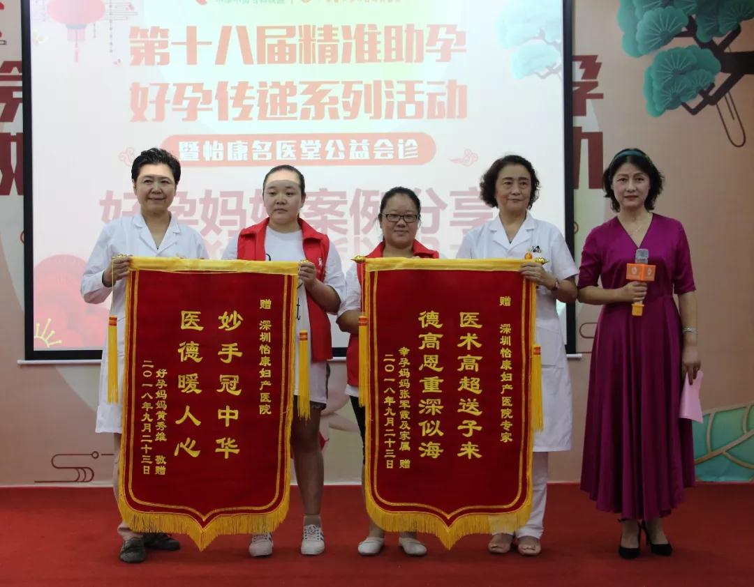 为了表达自己的感激之情,黄女士和张女士带来了锦旗致谢,送给了成功治不孕,帮助她们怀上宝宝的孙艺光主任和王丽敏主任。怡康也为回“娘家”传递好孕的怡康妈妈们送上了转运金珠,祝福她们好孕常伴,并送上了中秋的节日祝福——月饼礼盒,同时也为正在求子的不孕不育家庭送上了多重助孕大礼!怡康,让怀孕更简单,不仅是我们的口号,也是我们实践的目标和执着的追求!
